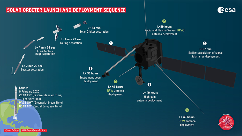Lundi 10 février 2020, à 05h03, heure française, la mission européenne Solar Orbiter a quitté la Terre à bord d’un lanceur Atlas V 411, depuis Cape Canaveral en Floride, en direction du Soleil. Sa croisière durera un peu moins de deux ans et sa mission scientifique entre cinq et neuf ans. Son instrument RPW traquera les ondes radio et plasma de notre étoile pour en percer les mystères.