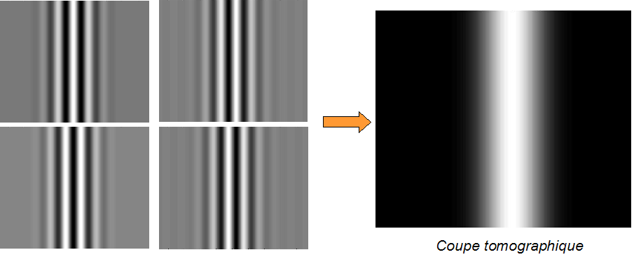 Pour reconstruire une coupe dans un échantillon en OCT plein champ, 4 images interférométriques déphasées de π/2 sont nécessaires.