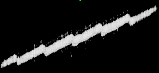 Des premiers résultats ont été obtenus en reconstruisant en trois dimensions la structure d’un échantillon en forme d’escalier. Celui-ci est dans un plastique très peu réfléchissant (signal de retour faible) et présente 7 marches de 2 mm de long par 150 microns de large. La différence de hauteur entre chaque marche est de 5 µm.