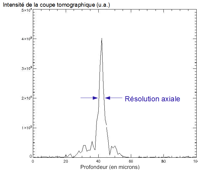 L’enveloppe des franges d’interférence (entre une référence et l’échantillon) donne directement l’image des structures de l’échantillon et permet de les localiser en profondeur, à la demi-longueur de cohérence de la source près.