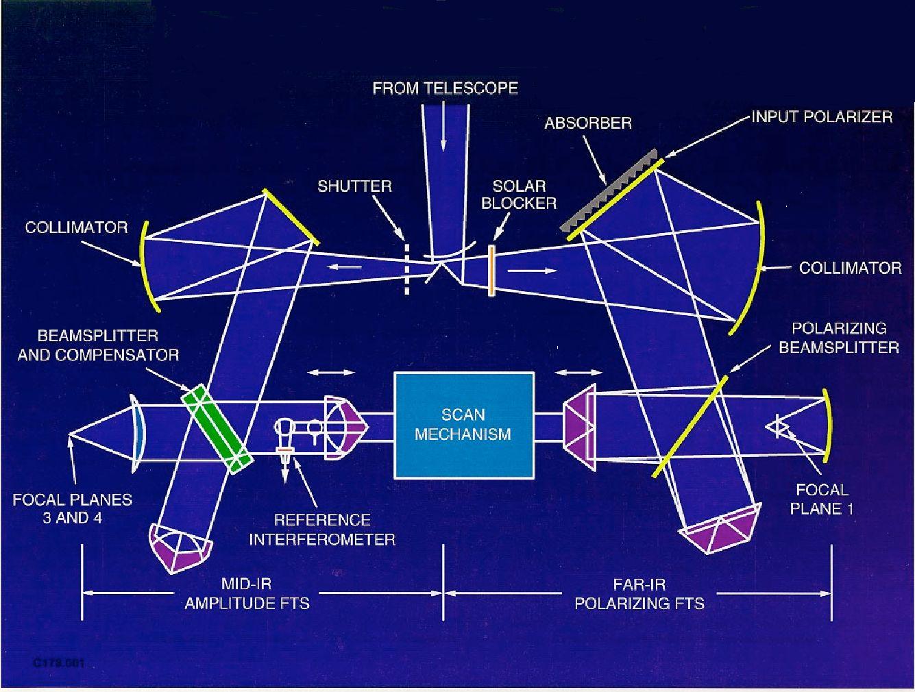 L’ensemble optique comprend un tĂ©lescope Cassegrain dont le miroir primaire paraboloĂŻde mesure 50,8 cm de diamètre et le miroir secondaire hyperboloĂŻde 7,6 cm de diamètre. Le rayonnement infrarouge incident est distribuĂ© entre les voies infrarouges "moyen" et "lointain" par un miroir de champ. A la sortie des interfĂ©romètres les faisceaux sont focalisĂ©s vers les dĂ©tecteurs. Un interfĂ©romètre de rĂ©fĂ©rence permet de maintenir une vitesse constante du mĂ©canisme de balayage et de contrĂ´ler l’Ă©chantillonnage des donnĂ©es.