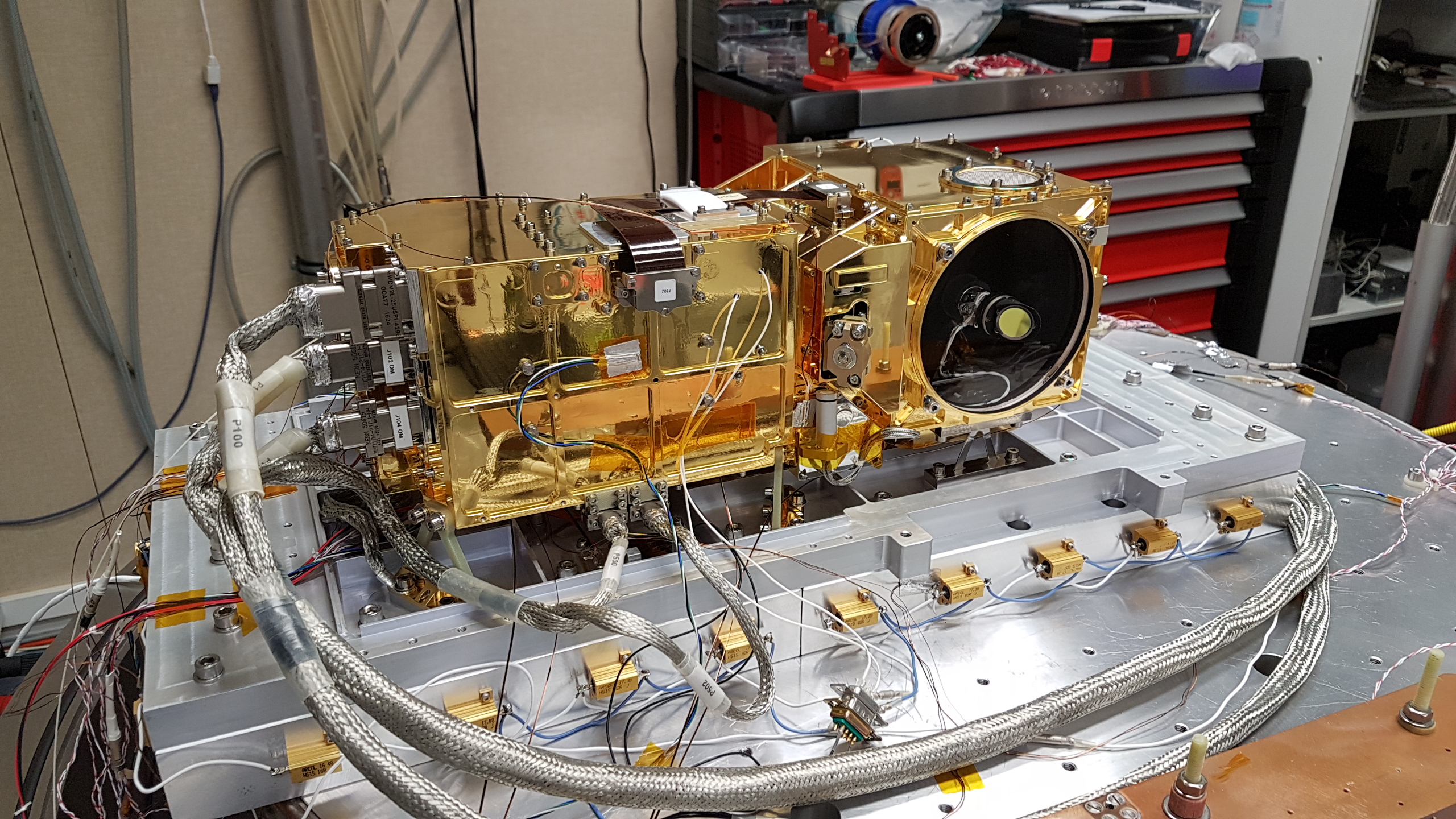 Un premier spectre infrarouge a été obtenu à chaud vendredi soir. Depuis samedi, l’assemblage complet est en refroidissement "lent" (à l’azote liquide) afin de le stabiliser à son premier palier de température d’étalonnage : -35°C, avec un environnement à -100°C.