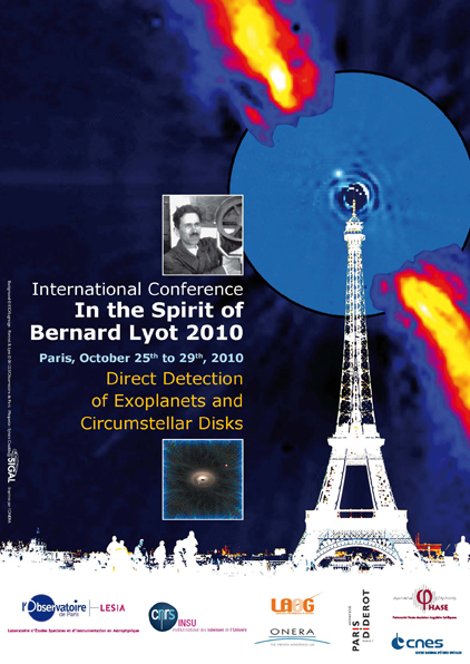 La conférence "In the spirit of B. Lyot 2010" est la seconde d’une série initiée par Paul Kalas (UC Berkley) en 2007. Elle permettra de faire le point sur les avancées dans ce domaine, autant sur les problématiques astrophysiques (études statistiques, modèles de formation, modèles d’atmosphère, ...) que sur les aspects techniques (coronographie, interférométrie, contrôle de front d’onde, ...). Ce sera également l’occasion de faire se rencontrer deux communautés partageant des buts et des outils communs : les planétologues et les exo-planétologues. Dans cette perspective, nous encourageons particulièrement les diverses équipes du LESIA à assister à cette conférence.