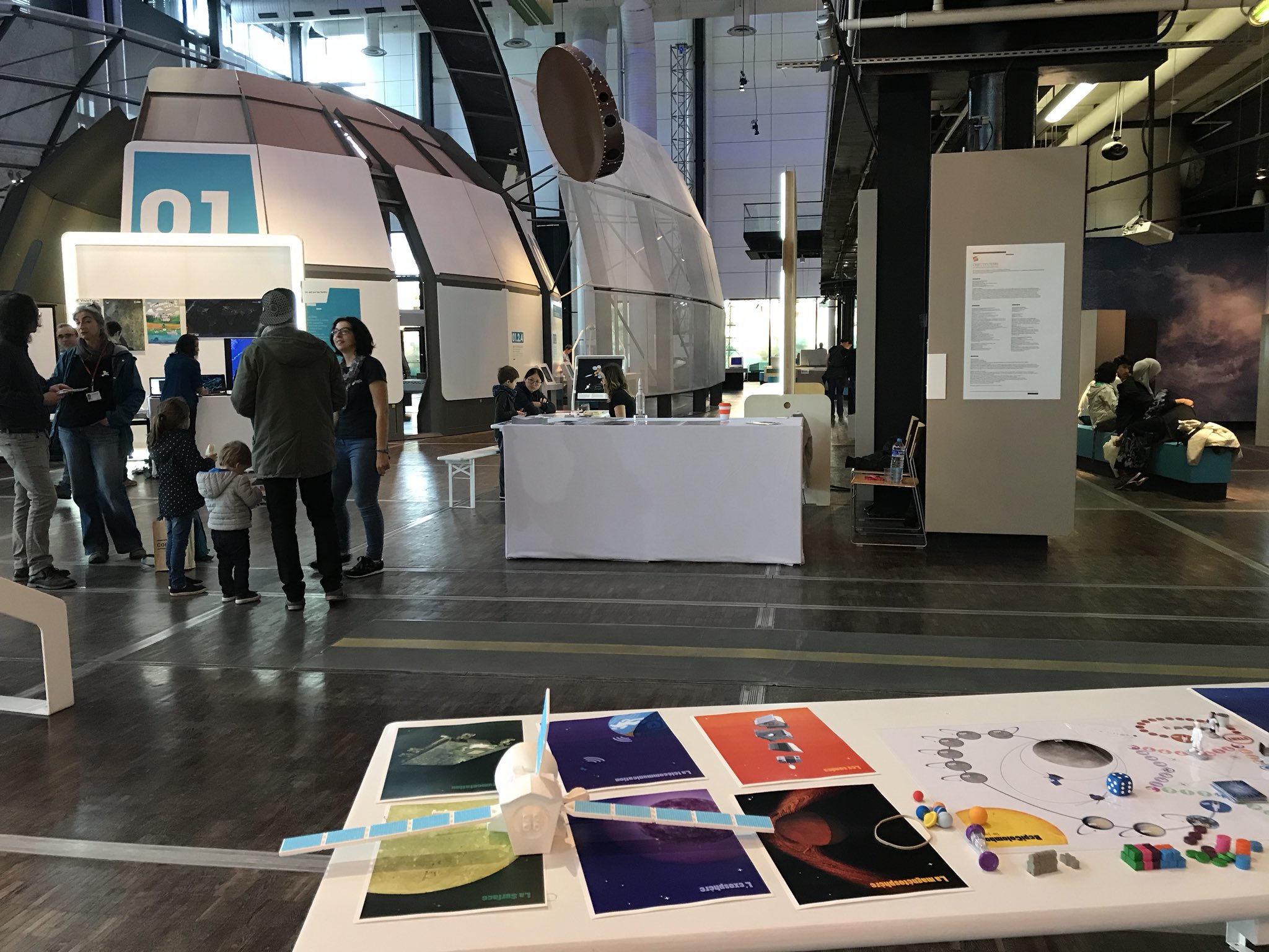 Alain Doressoundiram a présenté la mission, films et images à l’appui, pendant plusieurs heures le samedi après midi. Grâce à Prasanna Deshaprya, jeune docteur en astrophysique du LESIA, nous avons pu proposer des explications en anglais aux touristes non-francophones. Charlotte Gehan, elle aussi jeune docteure en astrophysique du LESIA, a accueilli des classes toute la journée du vendredi. Christophe Mathé et Nicolas Bott, doctorants en 3ème année, étaient là aussi pour faire jouer tout le monde. Lester David, qui a été ingénieur au LESIA pour la mission de nanosatellite PicSat, est venu en renfort vendredi pour accueillir les petits CM2 et les 6ème. Léa Griton est venue animer le jeu et présenter les métiers du spatial le samedi après-midi et le dimanche.