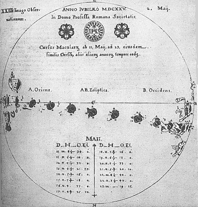 Passage d’un groupe de taches sur le disque solaire du 11 au 23 mai 1625. © Observatoire de Paris