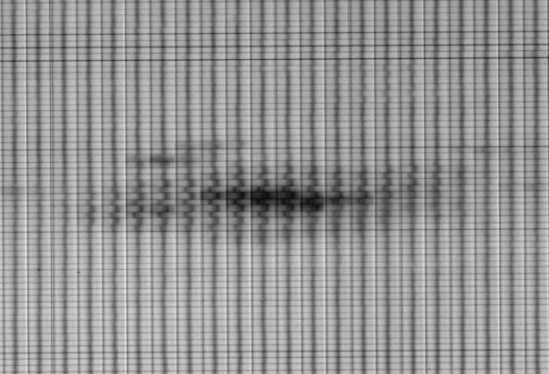 Cliché pris à Meudon par Raymond Michard à l’aide de la grille de Hale dans les années 1950/1960. Ce sont des spectres alternés en polarisation circulaire droite ou gauche. © Observatoire de Paris