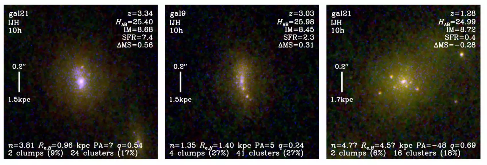 Illustrations d’observations par MICADO de galaxies au-dessus et au-dessous de la sĂ©quence principale Ă z∼2, créées avec le simulateur d’observations MICADO SimCADO.