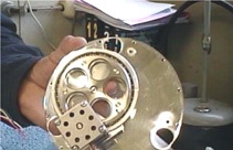 NAOS comporte Ă©galement 2 analyseurs de surface d’onde, qui permettent de mesurer les perturbations introduites par l’atmosphère. L’un de ces analyseurs a Ă©tĂ© conçu et rĂ©alisĂ© au LESIA : il fonctionne dans l’infrarouge afin de pouvoir Ă©tudier des astres de luminositĂ© trop faible dans les longueurs d’onde visible. La photo ci-contre montre l’un des sous-systèmes de cet appareil qui fonctionne Ă  très basse tempĂ©rature.