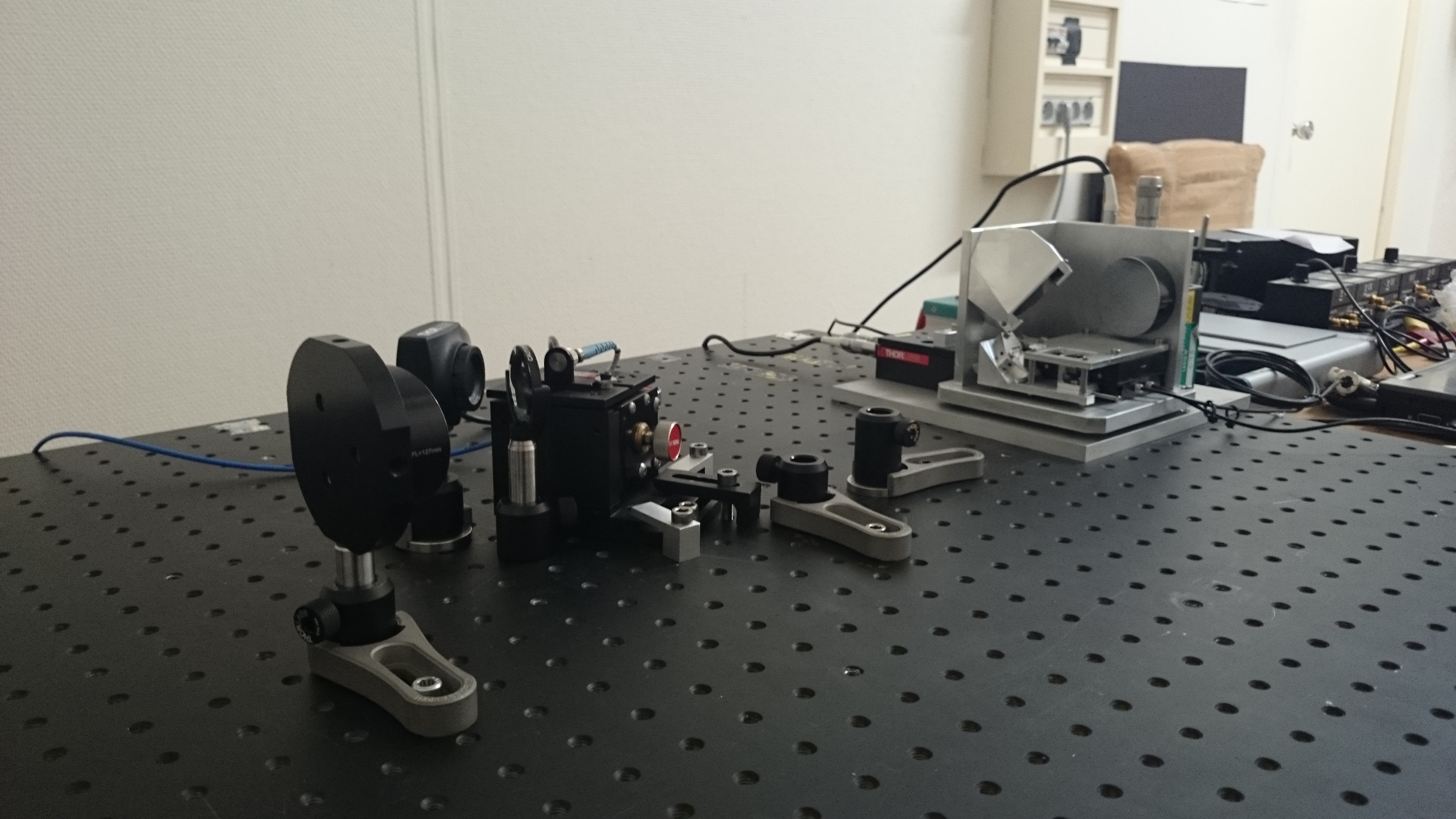 Après la campagne de tests en vibrations rĂ©alisĂ©e en dĂ©cembre 2015 Ă la PIT, oĂą nous avions dĂ©tecter une dĂ©faillance de la platine piezo-Ă©lectrique PI. Le choix de la platine s’est donc portĂ© sur une technologie qualifiĂ©e dĂ©veloppĂ©e par Cedrat. Une deuxième sĂ©rie d’essais a Ă©tĂ© faite dĂ©but avril pour vĂ©rifier le bon fonctionnement de l’Ă©lectronique de commande et de la photodiode. Les Ă©lĂ©ments ont subis jusqu’Ă 8g en frĂ©quence alĂ©atoire, et 13g en sinus dont voici l’essai sur l’axe X :