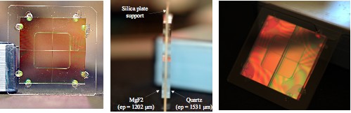 Ce composant rĂ©sulte de l’assemblage (Ă quelques microns près) de 4 lames de MgF2 (face avant) et de 4 lames de Quartz (face arrière). Sur chacun des Ă©tages deux des lames sont pivotĂ©es de 90° pour produire l’effet coronographique.
