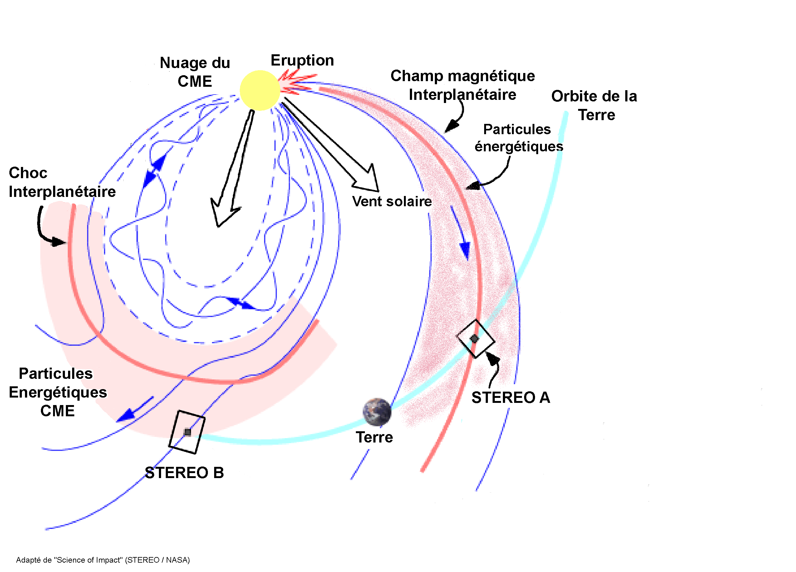 STEREO (Solar Terrestrial Relations Observatory) est la troisième mission de la NASA dans le cadre du programme Solar Terrestrial Probes ( STP ). Cette mission, lancée le 27 Octobre 2007 pour une durée de vie nominale de deux ans, est composée de deux sondes identiques qui fournissent les premières mesures stéréoscopiques jamais obtenues pour étudier le soleil, la nature des éjections coronales de masse (CME) et leur interaction avec le milieu interplanétaire et la magnétosphère terrestre. Les communications avec la sonde STEREO B ont été interrompues le 1er Octobre 2014 suite à une mise à jour de l’ordinateur de bord. La sonde Stereo A fonctionne toujours.